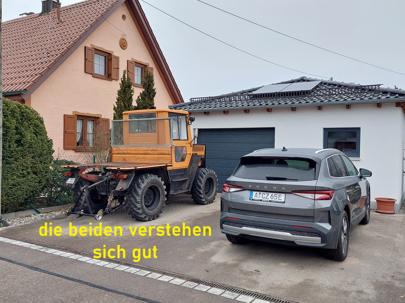 die Garage ist voll, der Elroq kommt in den Carport vor der Haustüre, da ist auch die Wallbox. Dieser Platz ist momentan noch belegt vom KIA eNiro, der wird diesen Monat noch abgeholt.